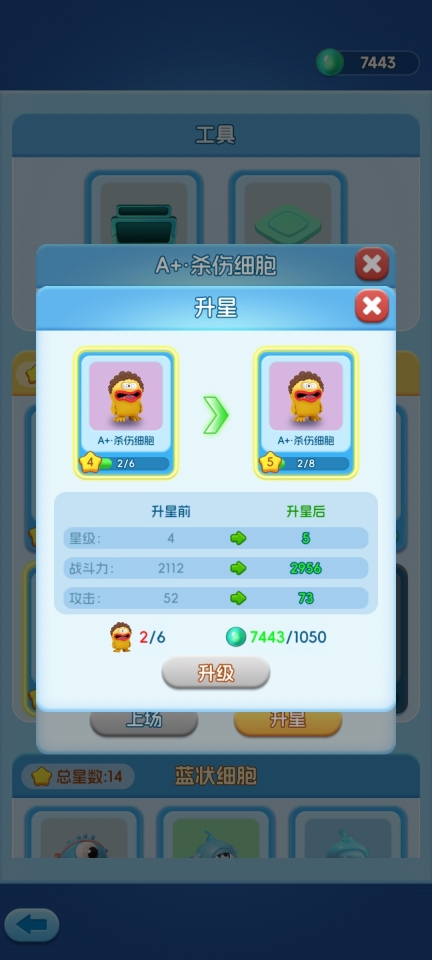 在细胞可以强化英雄。需要消耗绿币和英雄碎片。