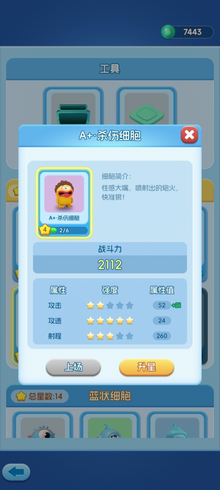 判断细胞类角色的强度时,需结合角色说明文本、三维星级以及实际使用体验。部分角色的技能设定包含群体攻击、减速、持续毒素等效果,其攻击力星级的极值情况(过高或过低)均会对实际表现产生作用。例如在排除范围因素的对比测试中,同为四星A+品质的杯状细胞(伤害数值3、攻击速度2,附带中毒效果),在总伤害输出上略高于同品质的蓝状细胞(伤害数值4、攻击速度2)。