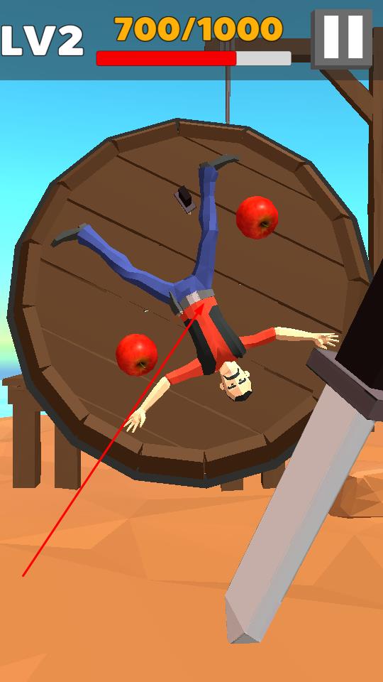 2、视觉风格卡通明快:转盘、苹果和人物都运用了卡通设计手法,色彩鲜艳夺目,细节描绘精致入微,使得整个投掷过程既充满挑战感,又能带来轻松愉悦的视觉体验,鲜明的画风极具吸引力。