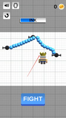 1游戏开始时,需要在画面上进行绘制操作。首先要在君主的脚下描绘出一个恰当的图形,确保君主不会直接接触地面;同时,还得在绘图工具的使用时长限制内,把两件兵器连接成一个整体。