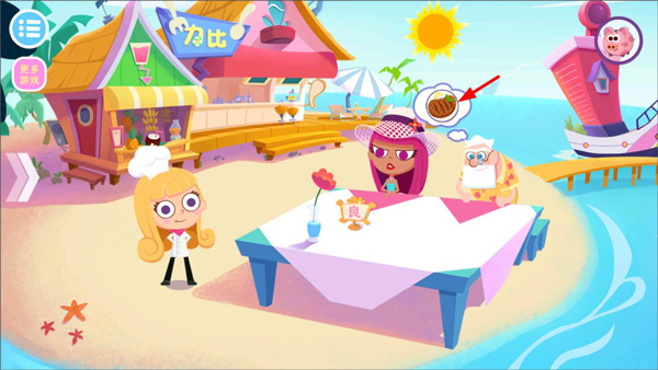 1、玩家启动美食兄妹海岛餐厅游戏,选定角色后引导客人入座,随后点击客人以查看其需求