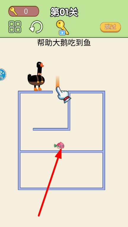 1启动思维引擎,先观察迷宫的全局构造和大鹅的起点方位,锁定食物所在的目标区域,接着就可以拖动大鹅的头部开启移动探索之旅了。