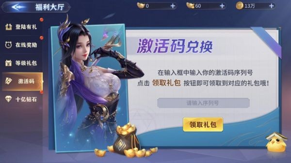 3、接着输入你所获取的激活码,点击领取礼包按钮,就能得到相应的奖励了。