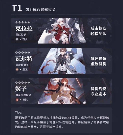 这份榜单聚焦于前期开荒场景,并非角色综合强度排名。制作时综合考量了35级前玩家获取遗器资源有限、各类怪物的抗性机制、首领敌人的弱点属性,以及忘却之庭的初期通关需求等多方面因素,情况较为复杂,建议结合自身游戏理解灵活参考。