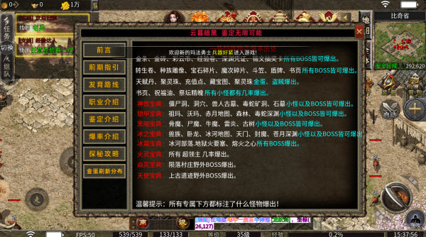 3、黑暗宝典:骨魔、尸魔、牛魔、雷炎、古树小怪以及BOSS皆可爆出。