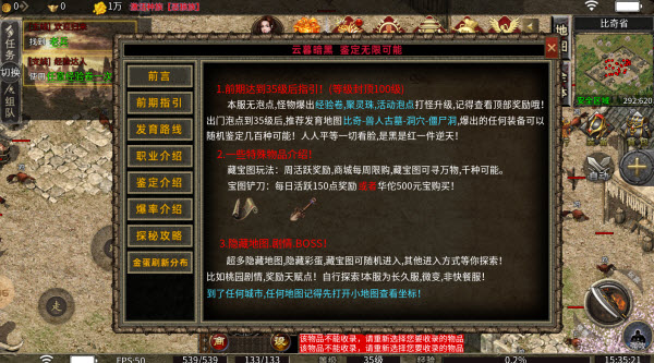 本服无泡点,怪物爆出经验卷,聚灵珠,活动泡点打怪升级,记得查看顶部奖励哦!出门泡点到35级后,推荐发育地图比奇-兽人古墓-洞穴-僵尸洞,爆出的任何装备可以随机鉴定几百种可能!人人平等一切看脸,是黑是红一件逆天!