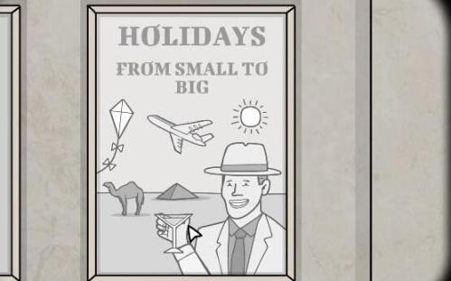 5找到墙上的画作并点击它,接着按特定顺序依次操作画面里的物品——先点那个像酒杯的图案,再选帽子形状的,然后是风筝样式的,之后是骆驼图形,再找到飞机模样的,接着点金字塔造型的,最后选太阳图案,完成这些步骤就能得到一把钥匙了。