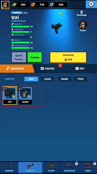 2、显示的是我们有两把枪,上方显示的是枪的性能