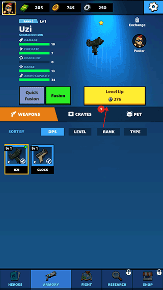 3进入游戏后,可通过点击角色来提升武器的攻击强度,还能选择使用炸弹类道具。