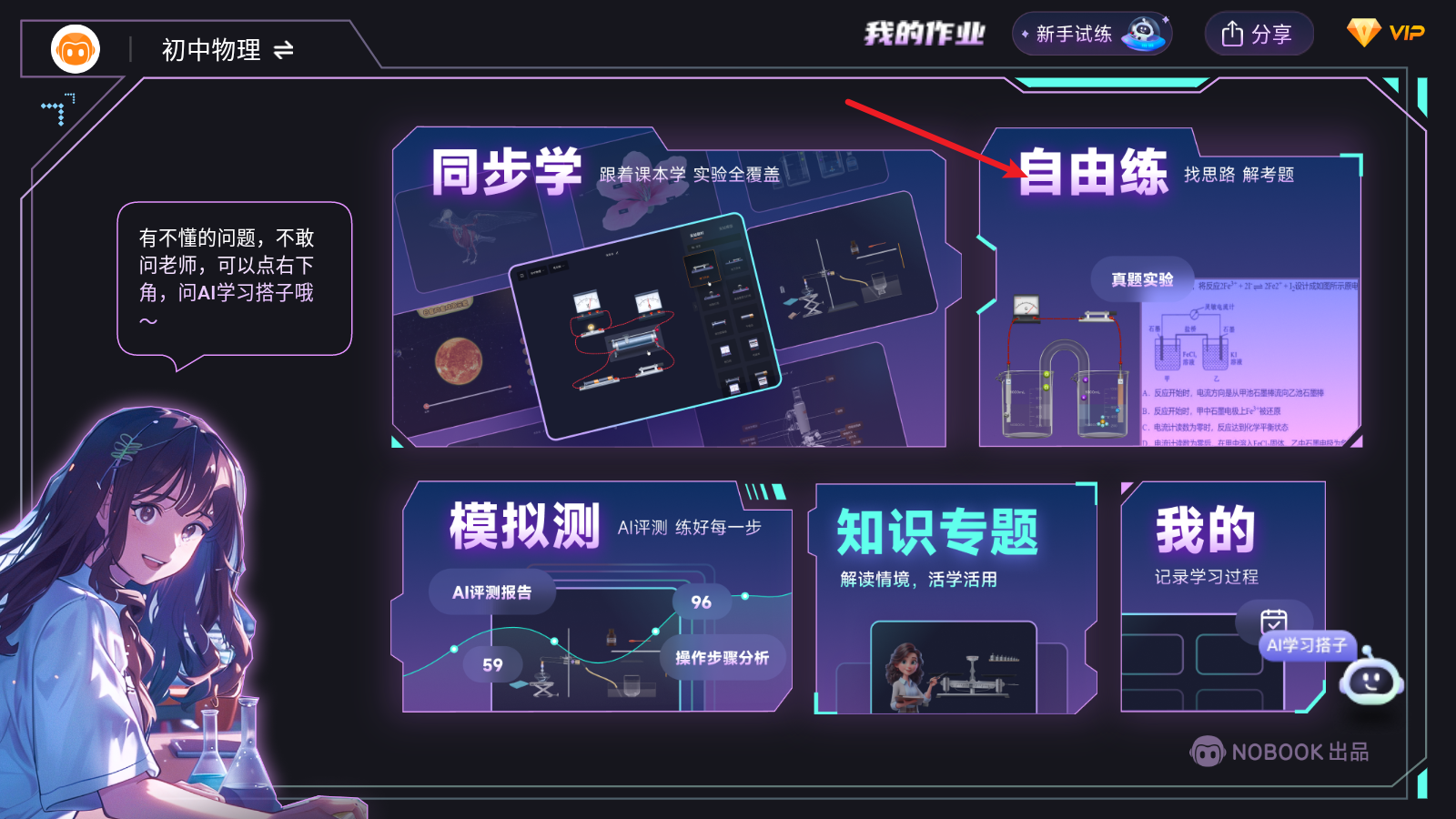 2、接着我们直接进入自由练习中,学习一下如何做实验。