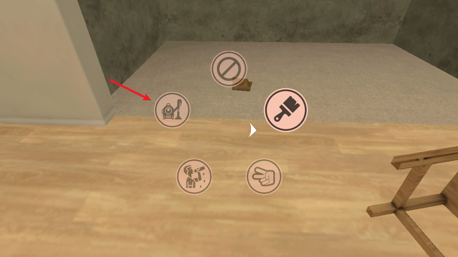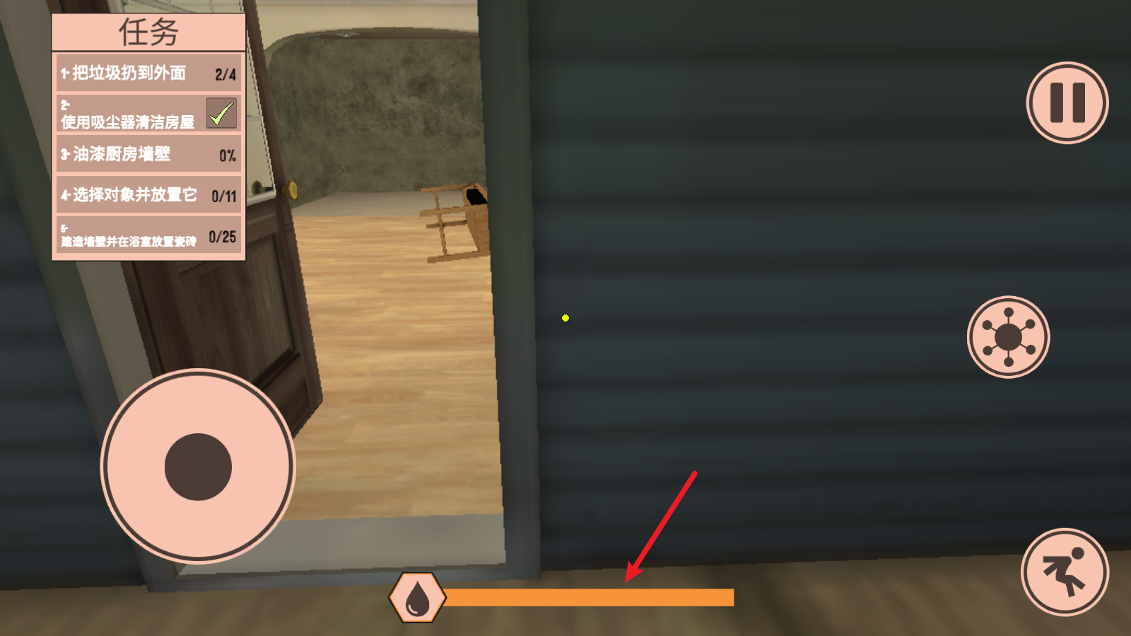 3、首先点击右侧的按钮,在这里可以切换自己的行动,我们拿出吸尘器。