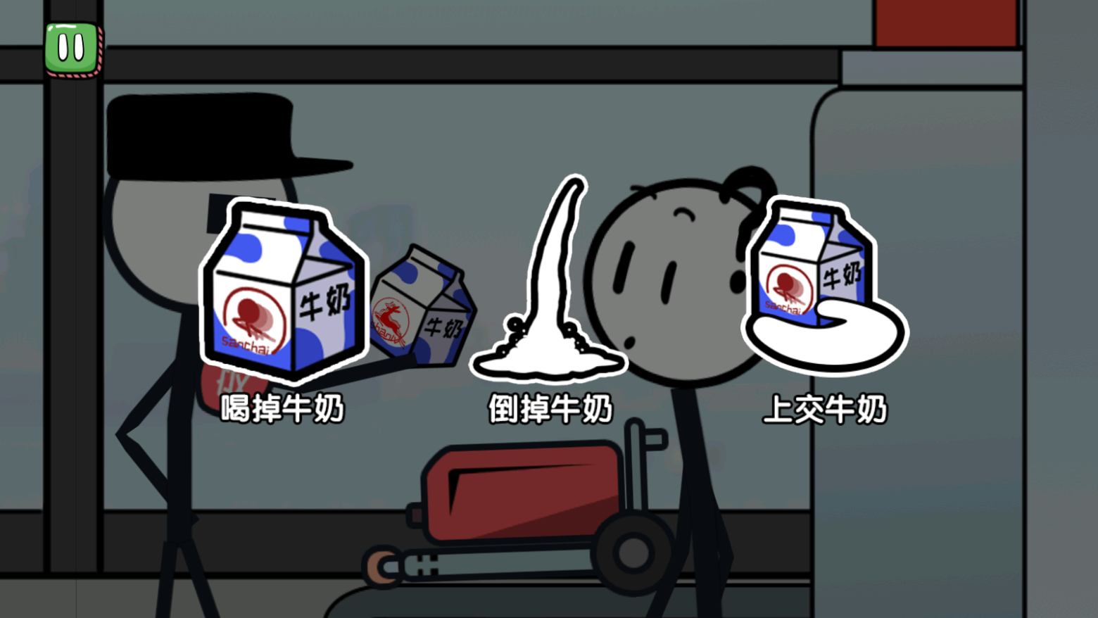 5、我们选择喝掉牛奶,结果没走两步就直接倒下了,游戏失败!(给了牛奶特写后才发现是三鹿,哈哈)