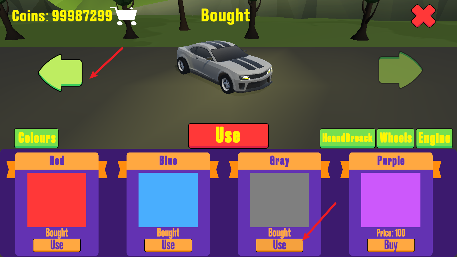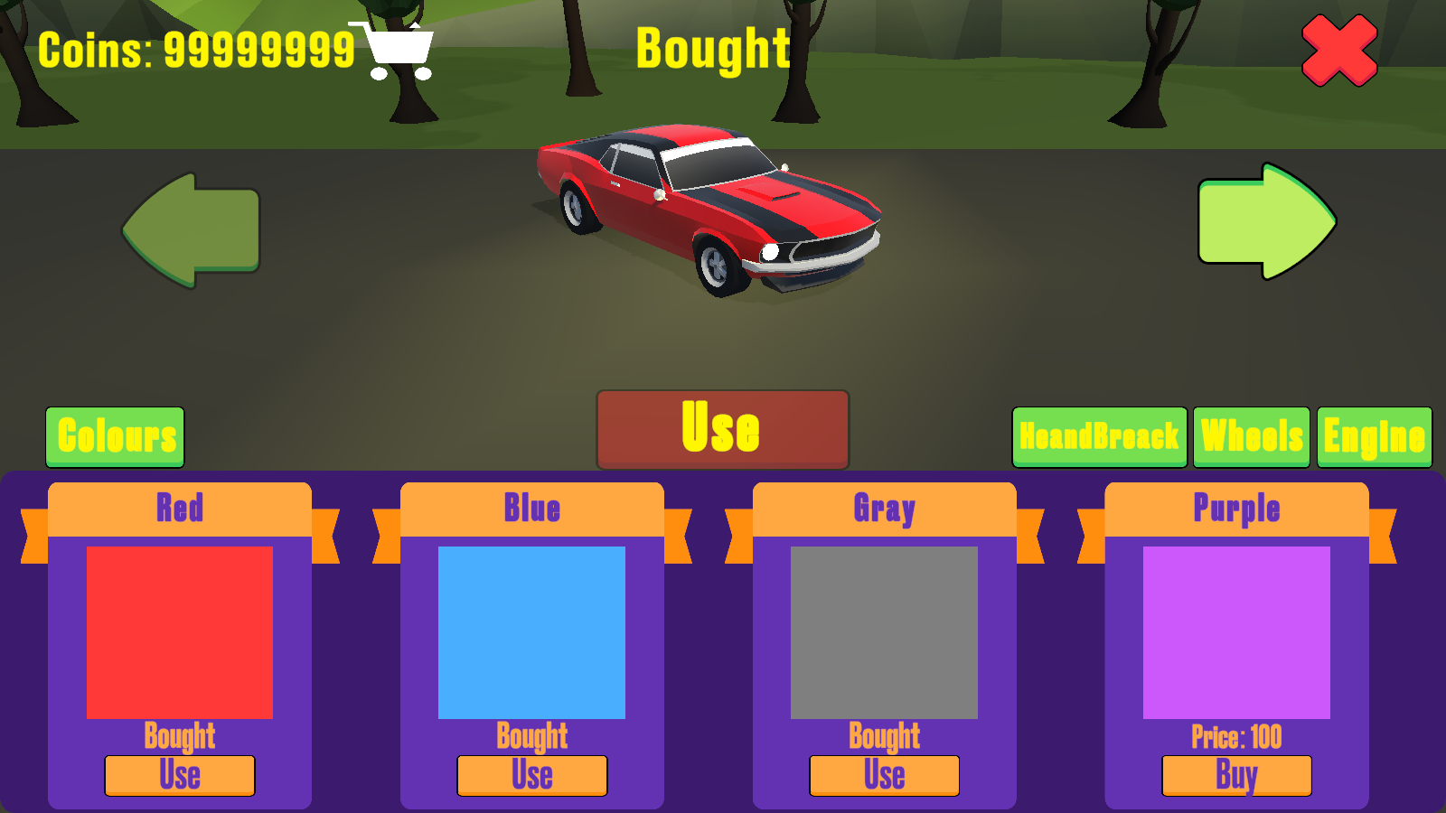 3、玩家可以自由的改装自己的赛车,配色、轮胎、引擎都能更换,用最炫酷的赛车去完成挑战!