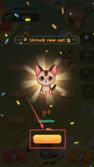 2之后,在解锁到新的猫咪时,记得点击“OK”按钮来完成确认操作。