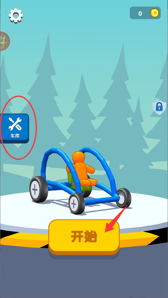 1进入游戏后点击开始按钮,在车库界面可以用金币解锁新配件,不同的零件能够提升单车的速度与稳定性。