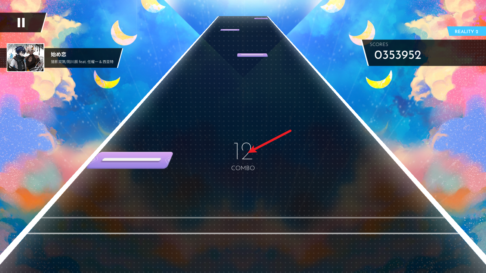7、连续击打音符还会有Combo,Combo越高,得分就会越多。