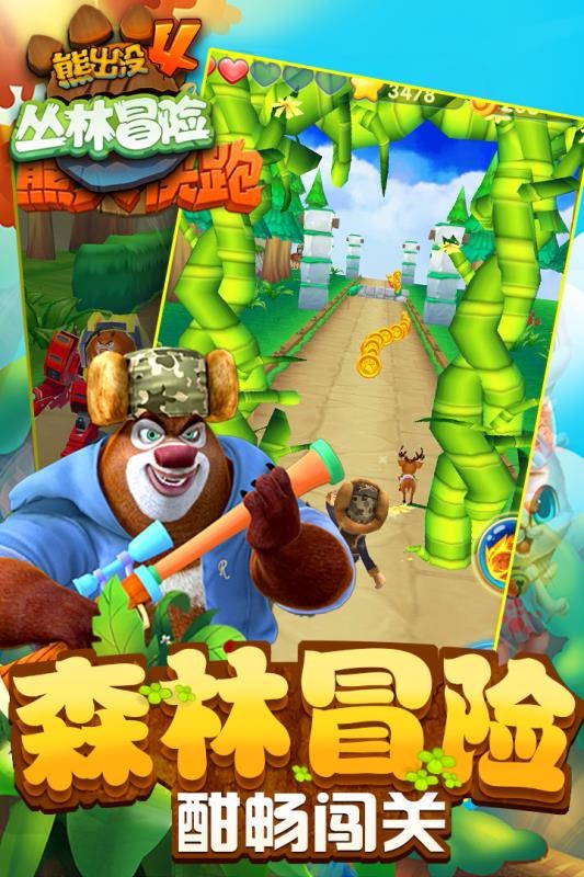 《熊出没4丛林冒险》是一款以熊出没为题材打造的精彩冒险游戏。游戏内容充满轻松愉快的挑战,还设计了两款全新坐骑供玩家体验。作品塑造了萌趣可爱的角色形象,悠闲的画风能让玩家感受到别样的游戏乐趣。该作首创特色机关玩法,融入了多种新奇游戏机制,同时设置了大量障碍元素,如鱼群、巨石、齿轮和火球等,各式各样的障碍物层出不穷,让玩家沉浸在熊出没的冒险世界中。游戏画面精美细腻,高清的场景与画风为玩家带来前所未有的视觉体验。此外,游戏玩法简单易上手,配备贴心的新手指导,帮助玩家轻松入门。