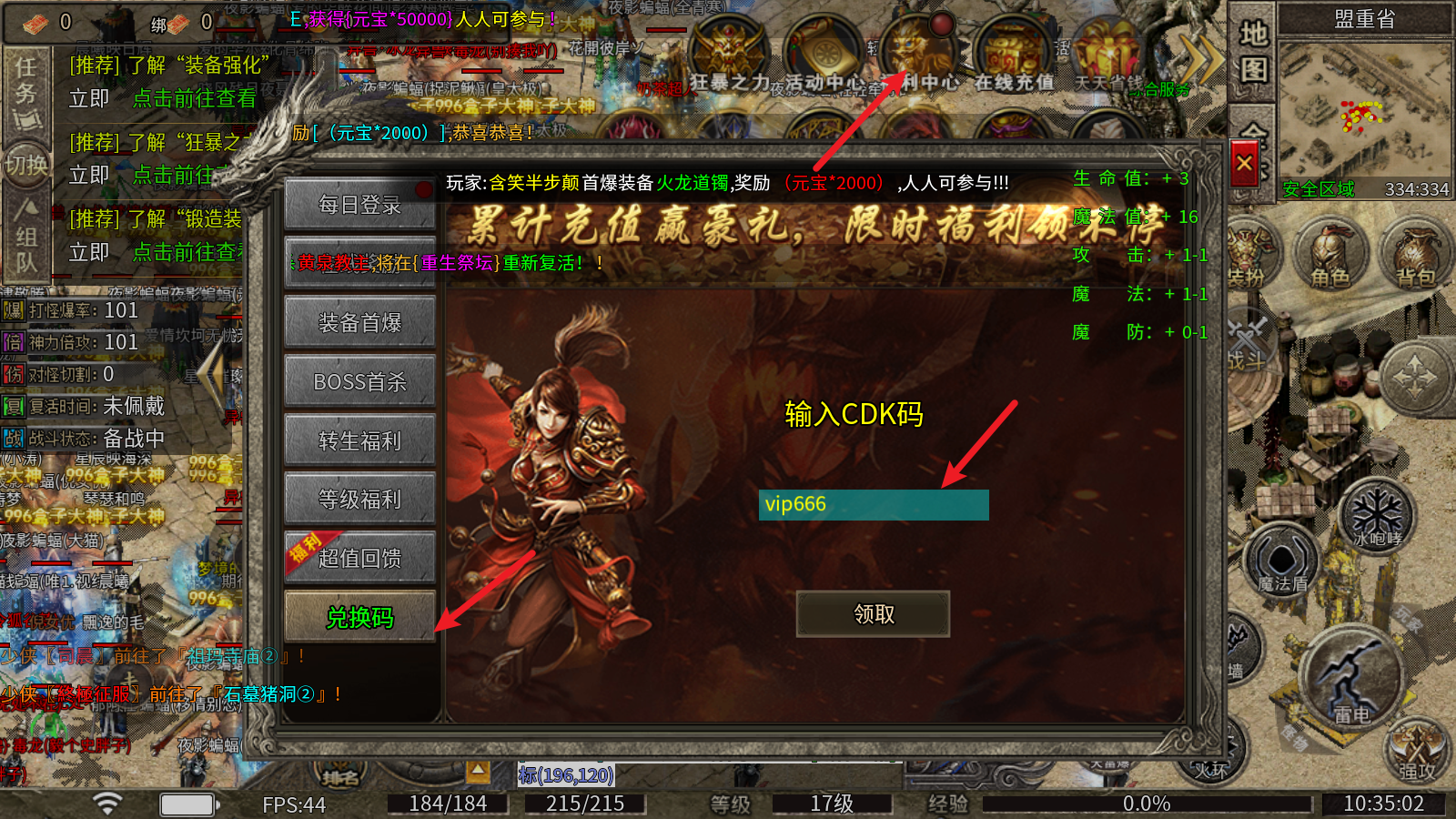 1、天降神兵、重生祭坛、幻影迷宫等活动每日不间断放送,大量充值红包、材料和装备领不停!