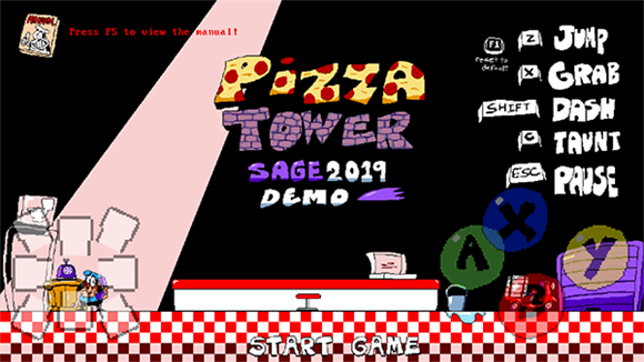 1、首先打开披萨塔,选择start game,点击A键开始游戏;