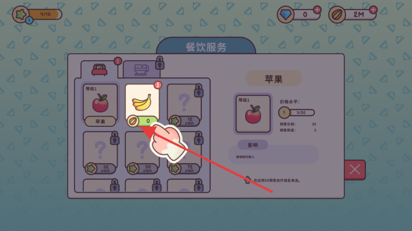 3在游戏的餐饮服务界面,按照红色箭头的指引,挑选对应的水果,完成餐饮服务流程,达成顾客的各项要求,从而得到游戏积分与奖励。
