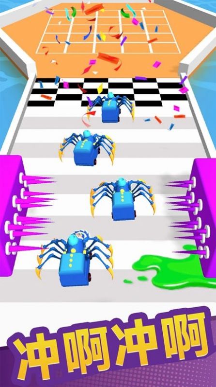 1. 指挥机械蜘蛛们闯过布满陷阱的跑酷关卡,最终存活下来的蜘蛛数量越多,游戏获得的评分就越高。