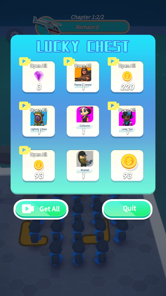 2、丰富多样的角色可以去解锁使用,合理的搭配阵容能够让你闯关效率更高!