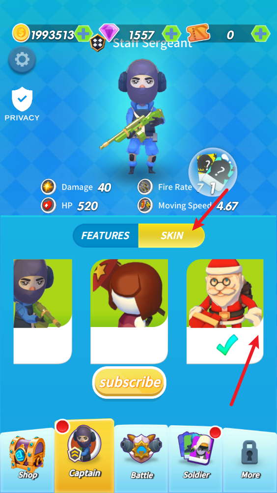 3、接着再次进入关卡当中,你的角色就更换成皮肤的形象了。