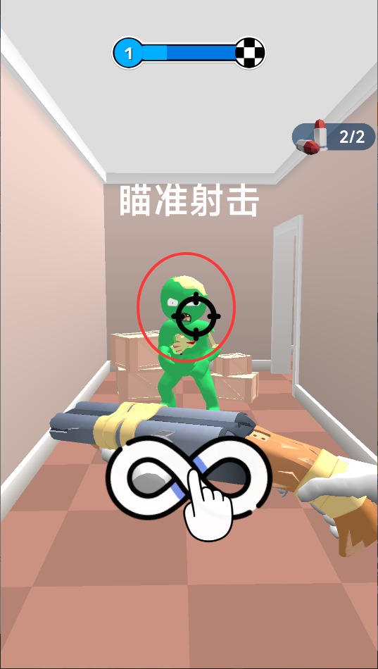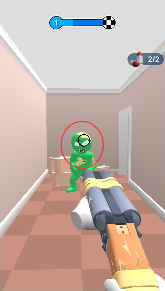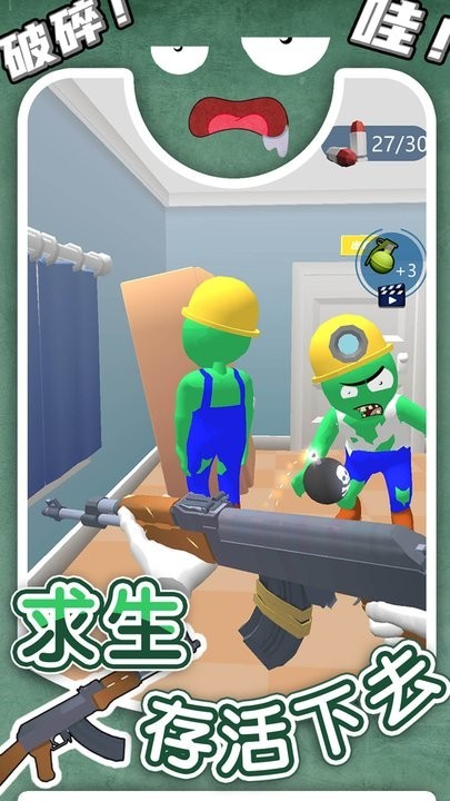 2长按屏幕可进入瞄准状态锁定目标,松开手指便能射出子弹,将靠近的丧尸击退。