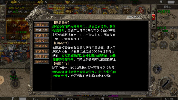 前期活动使者装备首爆可获得大量绑金,建议早点加入公会,公会成员通过刷BOSS每日获得贡献值,贡献值较高的公会不但能获得绑金,还能每日获得兽精元,用不上的兽魂可以直接换绑金。