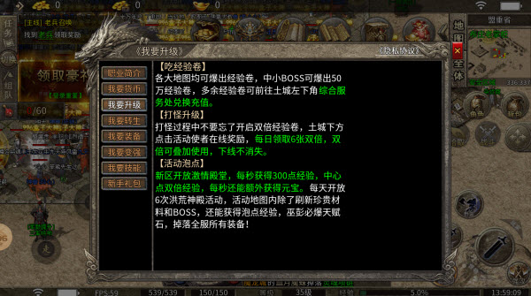 打怪过程中不要忘了开启双倍经验卷,土城下方点击活动使者在线奖励,每日领取6张双倍,双倍可叠加使用,下线不消失。