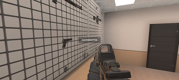 1、进入游戏后,移动到武器墙面并点击“customzaton”,即可进入武器切换界面,也能在此处更换角色服饰