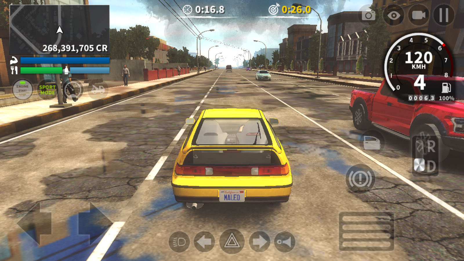 2、右侧的长踏板则是油门,点击即可启动。