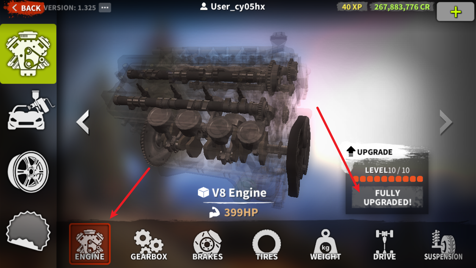 4、在这里可以为车辆的各种零件进行更换以及升级。