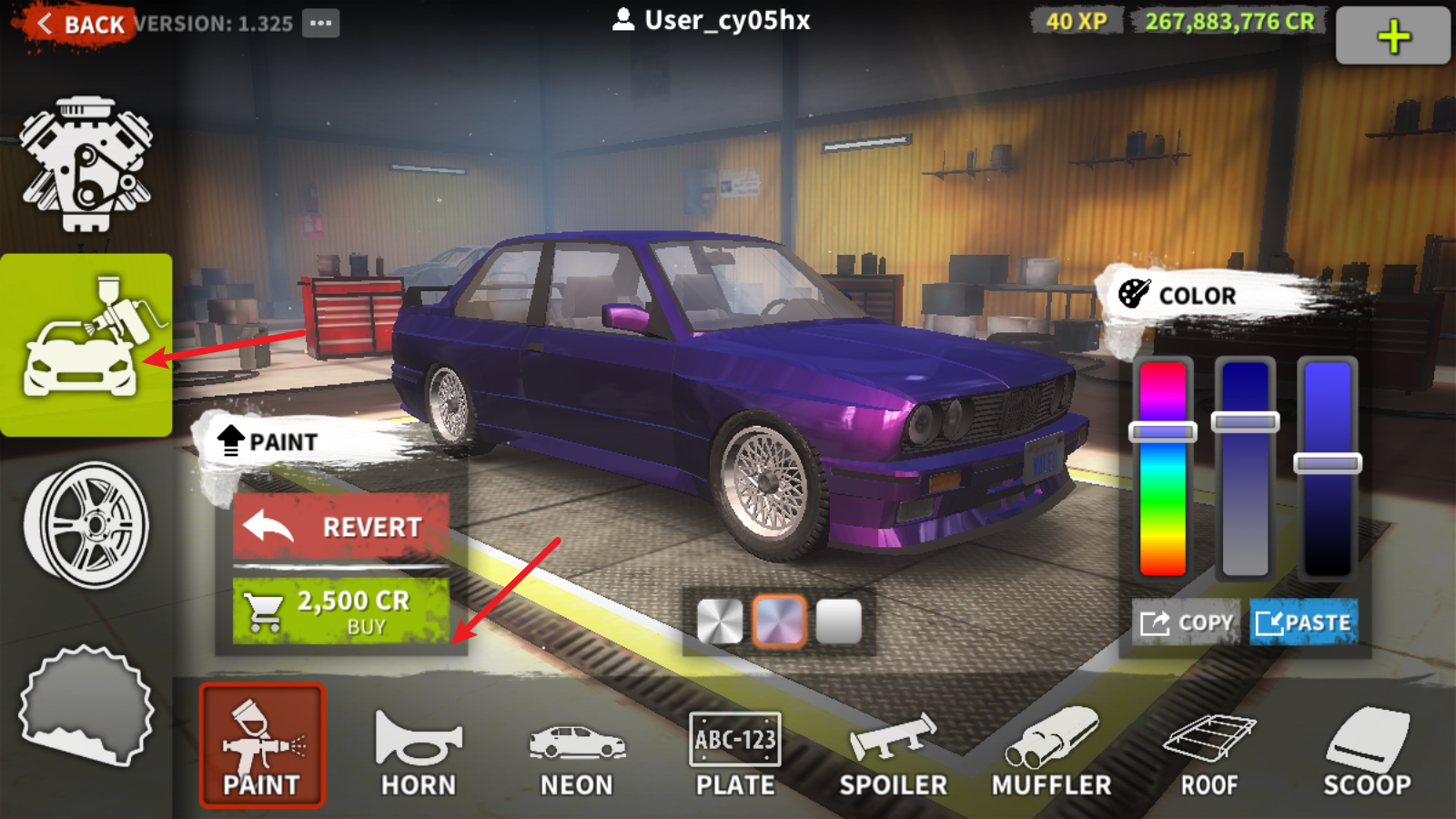 3、海量炫酷的汽车可以去购买使用,并且还能自由的改装,换上自己喜欢的涂装!