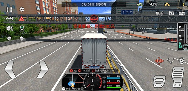 5在运输环节,玩家需借助底部的地图指引前往目的地。行驶途中务必留意:要系好安全带(其标识为刹车区域上方的红色图标),同时需遵守交通规则,避免发生碰撞等意外情况。一旦违规或出现事故,不仅会面临罚款,还可能导致货物受损。