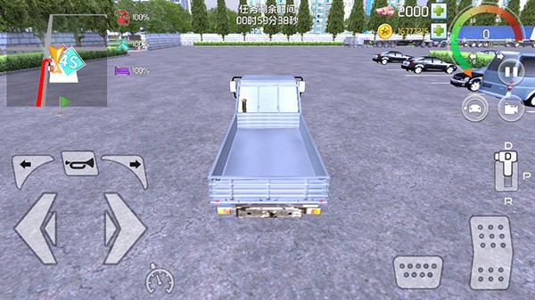 3进入游戏后,先操控车辆前往前方的装货区域。左下角的按钮用于调整方向,右下角则是控制车辆前进和停止的按键,若需要倒车,点击前进按键即可切换至倒车档位。