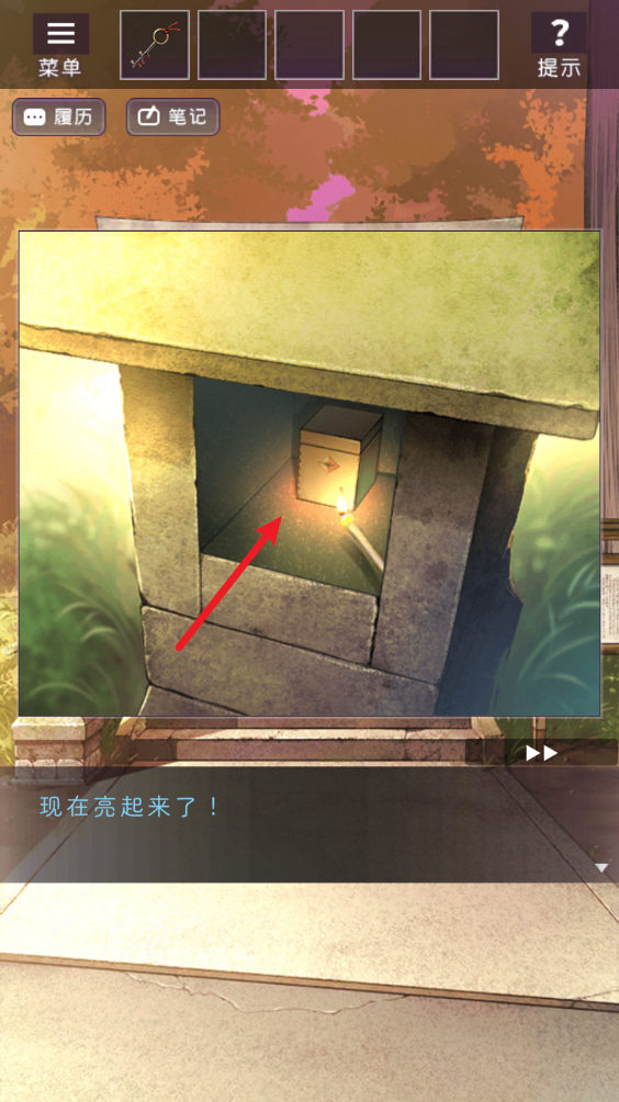 7、点击道具就可以使用了,我们先点击蜡烛,然后点击火柴就能将其点燃了。