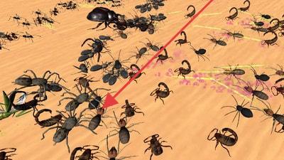 3、避开“蝎子天敌”!遇到蝎子时,带领蚁群利用地形(石头、草丛)进行迂回,每次成功躲避后,能保留70%的兵力,维持战斗力继续作战,这一点至关重要。