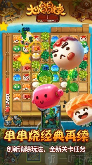 大小串串烧是一款休闲益智类游戏,玩家的目标是持续消除各类元素,在此过程中能获取相应奖励。游戏里部分关卡可能会带来一定挑战,但无需担忧——获得的奖励包含金币与各类道具,金币可用于购买道具,借助道具能让消除过程变得更为轻松顺畅。