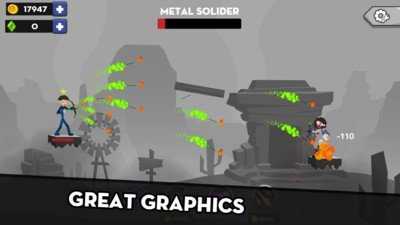3.游戏操作十分简单,玩家仅需触摸屏幕,就能操控火柴人弓箭手完成瞄准与射击动作。