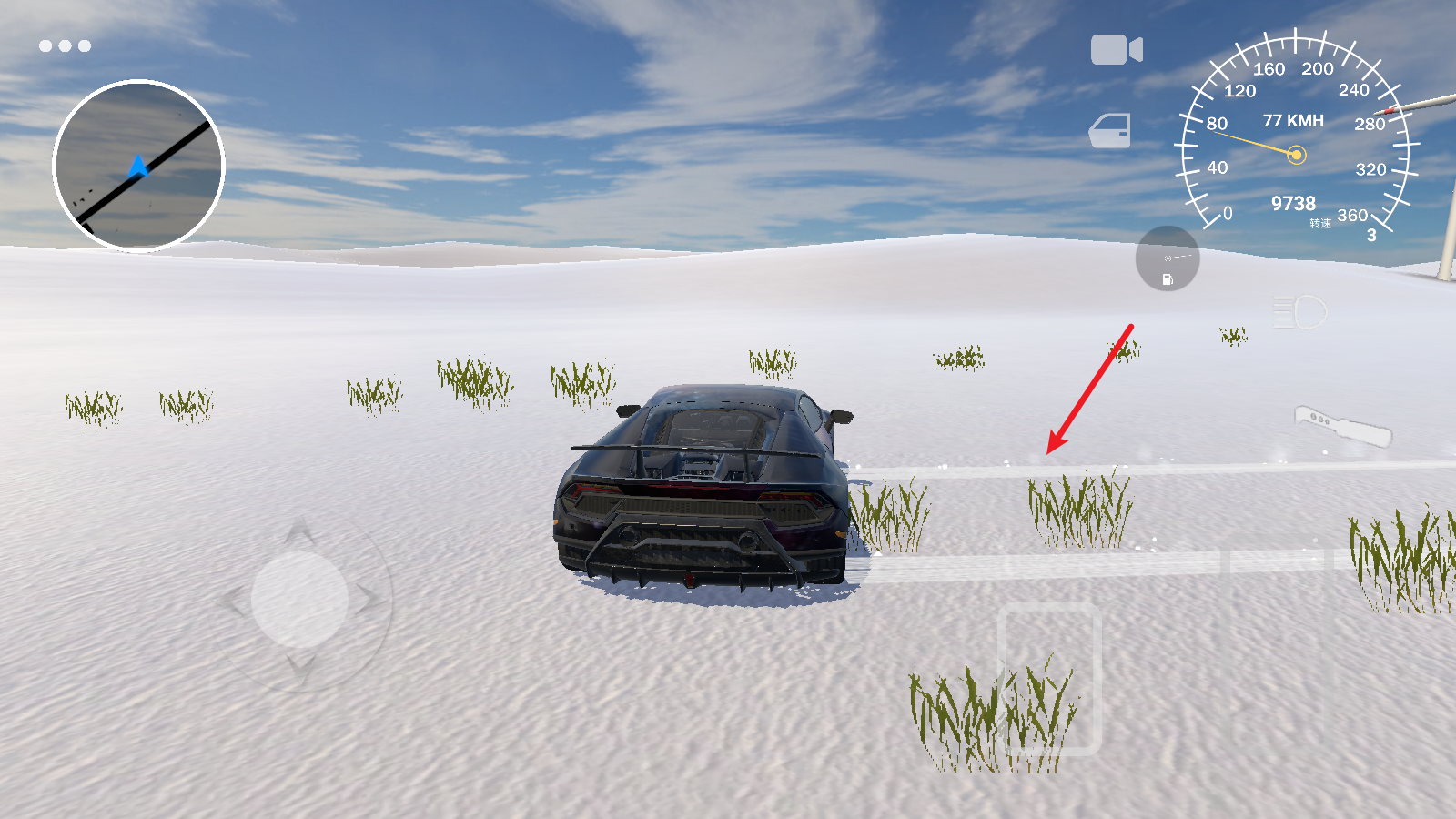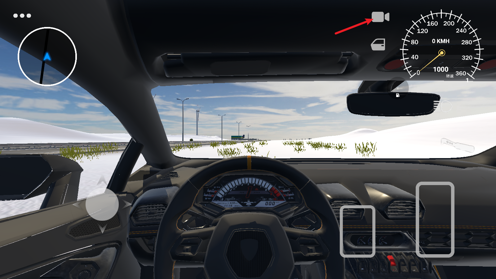 4、短踏板则是后退,并且会切换你的驾驶视角,右侧的手刹按住即可降低速度并刹车。