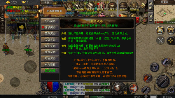1、升级:通过打怪升级,经验丹只由Boss产出,无合成等方式。