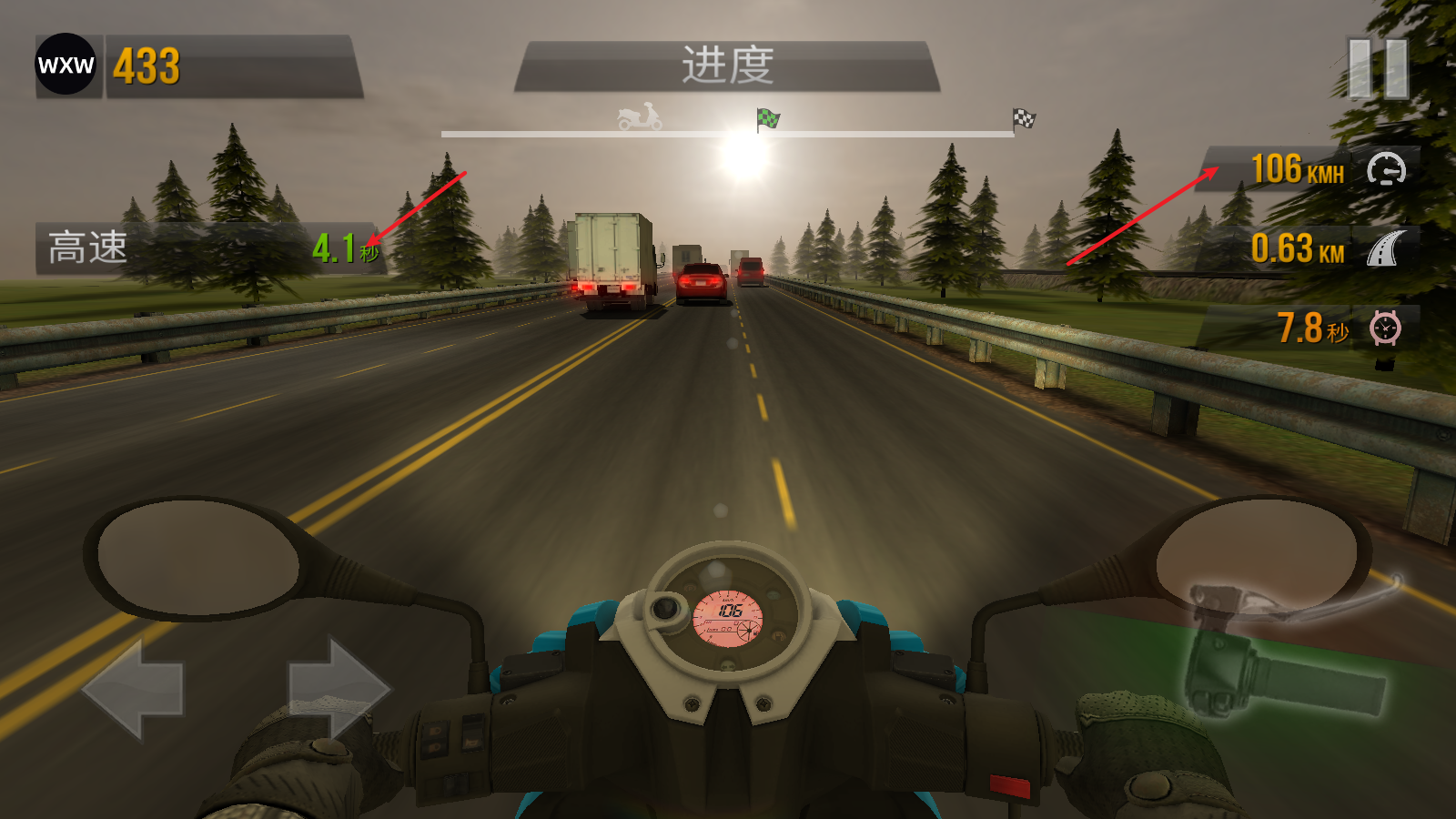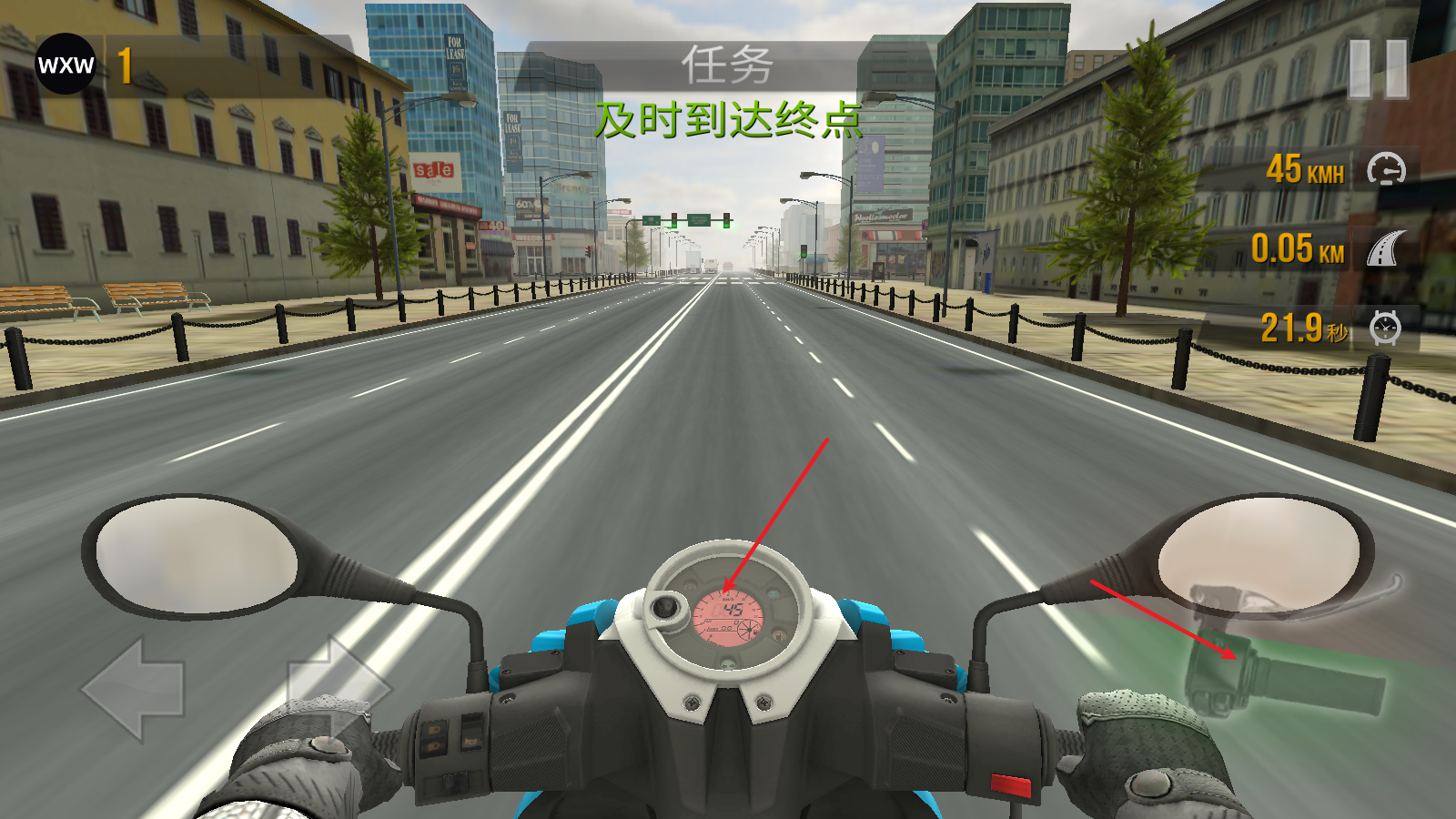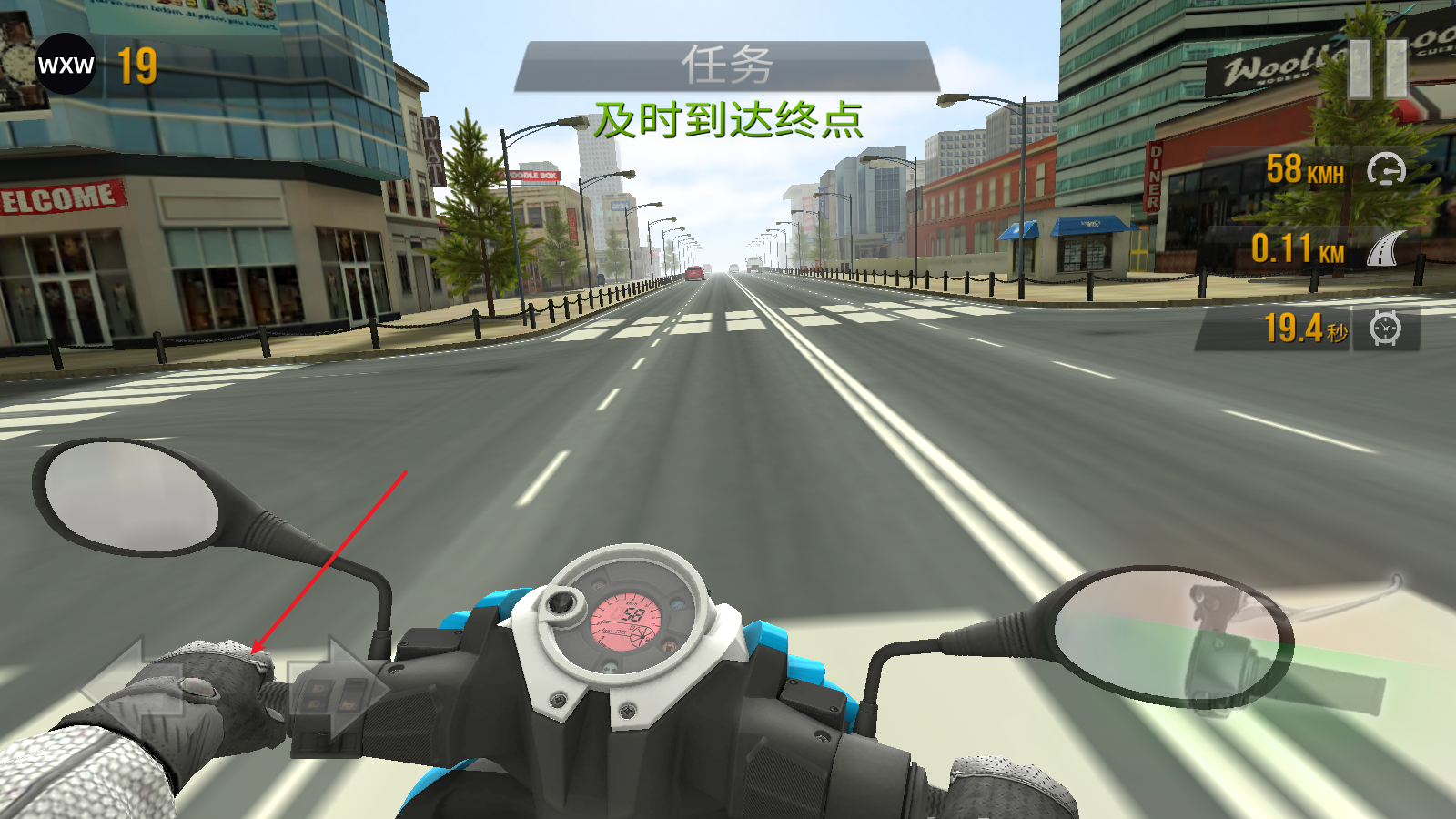 3、首先来熟悉操作,点击右侧的握把即可进行加速。