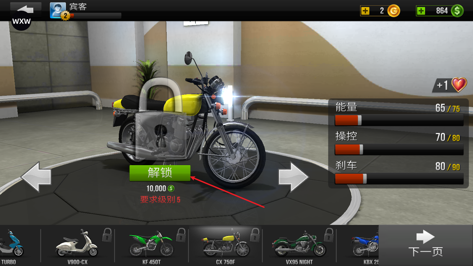 2、在这里我们可以解锁自己喜欢的帅气摩托。
