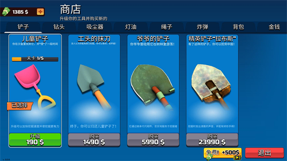 5、消耗金币可以在商店解锁新的挖掘工具或者对工具进行升级。