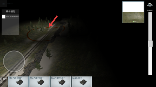 3、点击下方的坦克单位进行选中,若选择其他单位则会取消当前选中状态,规划蓝色路径避开石墙等障碍物,引导部队前往目标地点。