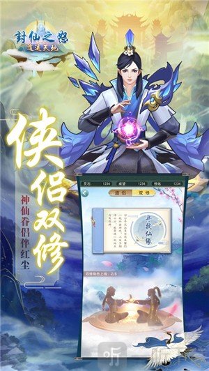 3.在游戏里,你可以和心仪的那个TA培养感情,互相赠送信物,体验双修大道,一起遨游天下。