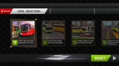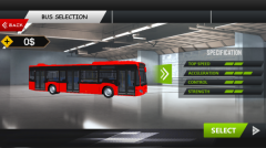 2、进入【BUSSELECTION】界面,查看红色巴士的参数(TOPSPEED),点击【SELECT】按钮选定该巴士,为任务做准备。