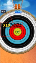 1、找到靶心红框标出的“X10”高分区,长按屏幕积蓄力量并调整角度,松开手指射出箭矢,若命中该区域就能得到十倍得分奖励。
