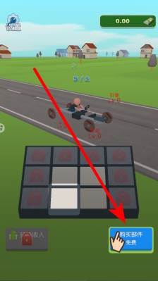 1、进入游戏后,点击“购买部件”选项,获取引擎、车轮等赛车各类部件,为后续升级赛车储备基础零件,开启赛车养成的第一步。